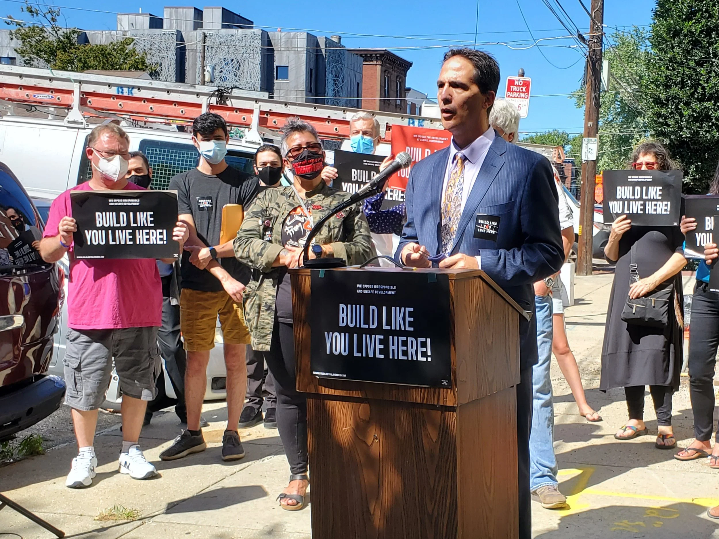 Joe speaks at a press conference addressing construction problems in Philadelphia. (Sept. 2021)
